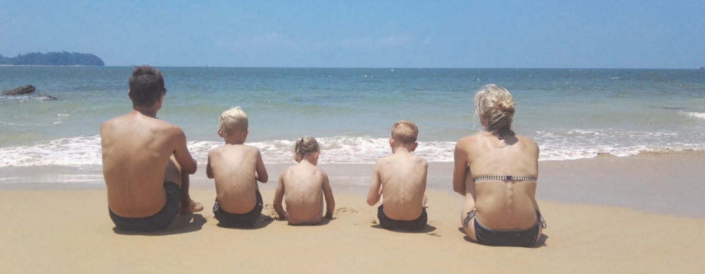 Liesbet schreef als aankondiging voor deze maandelijkse ‘cirkel in verbondenheid’: ‘We namen tijd om er drie maanden tussenuit te knijpen, naar de zon, met elkaar. Jef, onze drie kinderen en ik. Ik ga op reis en neem mee: een ticket naar Bangkok, de reservatie voor onze eerste drie nachten in een hotelletje in Kanchanaburi en het vertrouwen dat de rest van de reis zich wel zou ontvouwen. Wat het is geworden, wat er nog overblijft van dat avontuur in ons leven en hier thuis: daarover kom ik graag getuigen.’