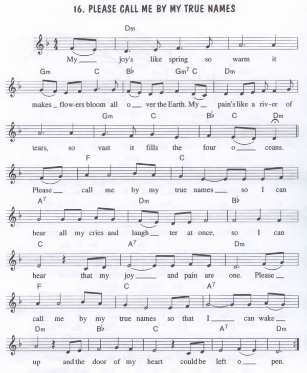 Verdriet en vreugde ontstaan uit dezelfde bron. Als mens zijn we dragers zowel van vreugde als van verdriet. Daarom hou ik zo van het lied dat we nu gaan zingen. Het is een lied dat ik voor het eerst hoorde tijdens mijn retraite in Plum Village bij Thich Nhat Hanh.